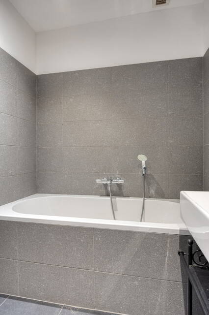 De luxe badkamer beschikt over een ligbad, inloopdouche en wastafel — een hoogwaardige afwerking die zorgt voor dagelijks comfort. De hoofdslaapkamer is ruim en rustig gelegen; de tweede kamer is ideaal als logeer- of werkkamer.