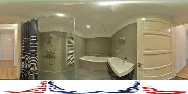 The luxurious bathroom features a bathtub, walk-in shower, and washbasin — a high-quality finish that provides comfort on a daily basis. The main bedroom is spacious and quietly located, while the second room is ideal as a guest room or home office.