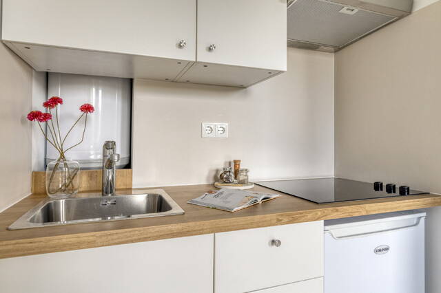The studio feels light and open upon entering, with a smart layout that makes the most of the space. The living area offers access to a French balcony, perfect for letting in fresh air and creating an indoor-outdoor feel.