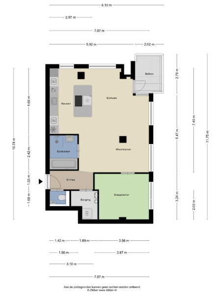 – 1 slaapkamer, eenvoudig uit te breiden naar 2