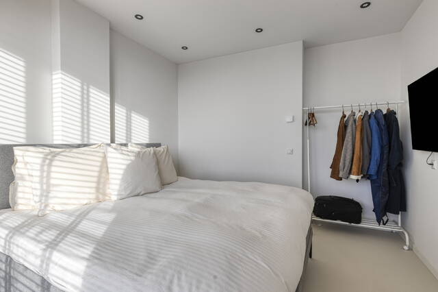 De slaapkamer is ruim en comfortabel, en dankzij de indeling is het bovendien eenvoudig mogelijk om een tweede slaapkamer te creëren. De badkamer heeft een moderne, frisse uitstraling en past perfect bij de luxe afwerking van de rest van de woning.