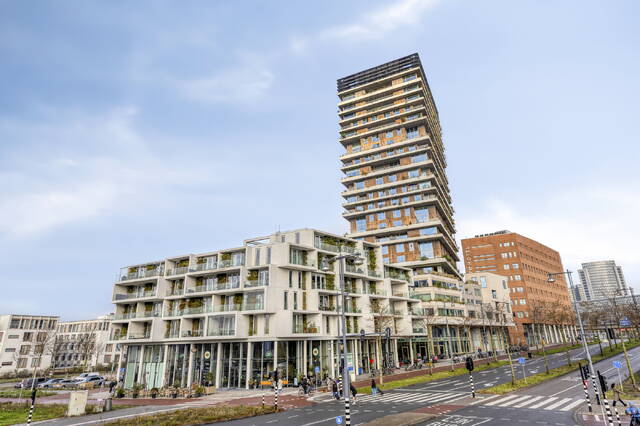 Situated on the 13th floor of the sustainable and recently completed Vertical East (2023), this corner apartment immediately feels special. The first thing you’ll notice? The expansive windows and the impressive view stretching from Schiphol Airport all the way to Amsterdam-Noord. During the day, you watch the city in motion; at night, everything transforms into a shimmering sea of lights.