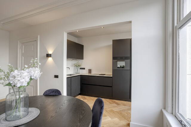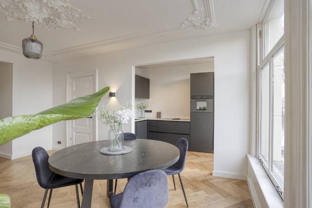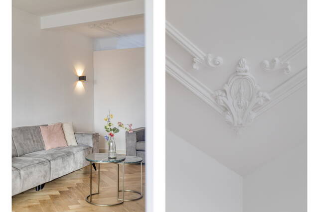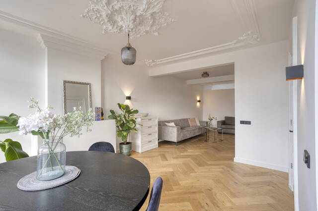Living in a national monument is more than just living – it's an experience. The moment you walk into Binnenkant 46 D, you’ll feel the soul of the city in every corner. The ceilings with original ornaments lend the living room grandeur and elegance, flooding the space with natural light and a sense of calm, right in the buzzing city center.