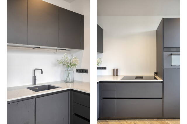 With 91.1 m² of living space, there’s room to breathe, live and create. The two bedrooms are generously sized and located at the quiet rear of the apartment, ideal for peaceful sleep after a dynamic day in the city. The semi open kitchen, updated in 2023, is a culinary dream, equipped with sleek built-in appliances and designed for both everyday cooking and socializing.