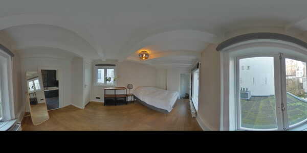 At the rear, the master bedroom offers tranquillity and space, complete with built-in wardrobes, en-suite bathroom with walk-in shower, double sink and toilet – and direct access to a 33 m² private roof terrace. A sun-drenched oasis right in the city centre.