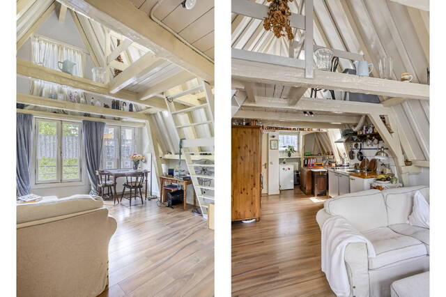 Characterful details: high ceilings, wood beams, large windows
