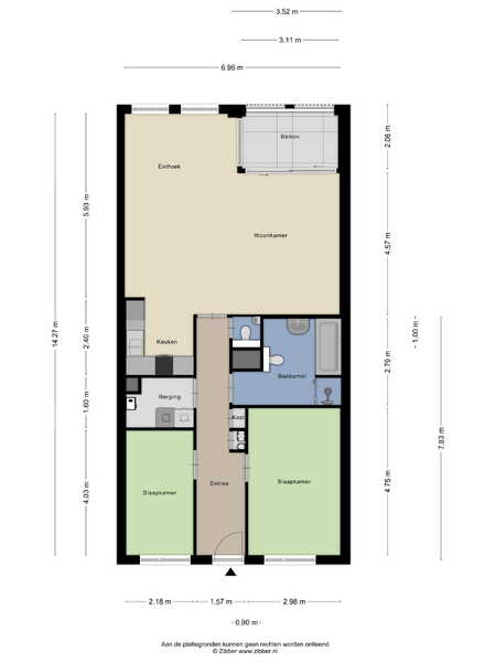 De woning beschikt over twee slaapkamers, beide prettig van formaat en opvallend comfortabel in de zomer. Dankzij de ligging en bouwkwaliteit blijven de kamers aangenaam koel, wat het wooncomfort het hele jaar door vergroot.