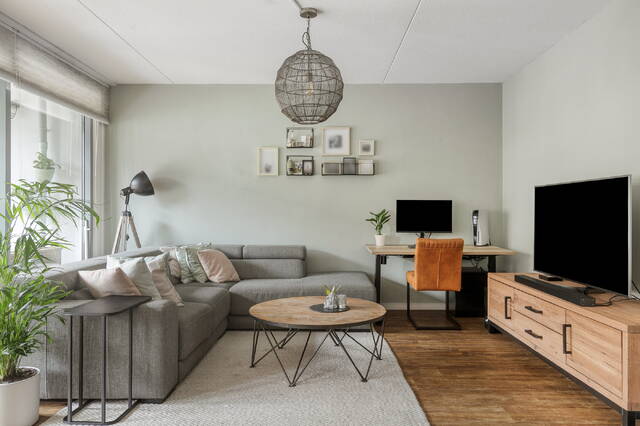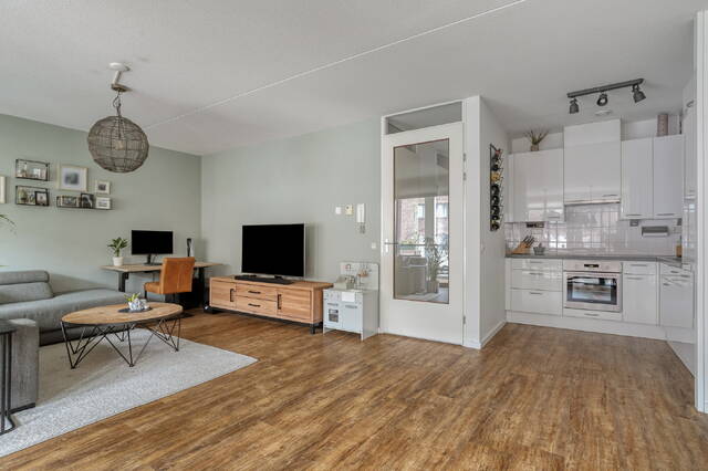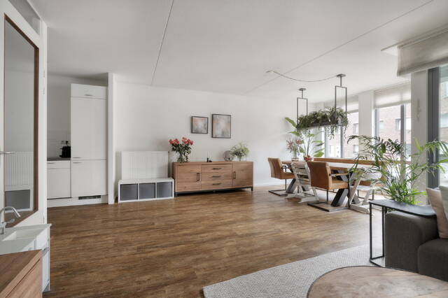 This well-laid-out apartment of approximately 92 m² is located on the first floor of a well-maintained building from 2008 and offers everything you expect from modern living. The spacious living room forms the heart of the home and feels wonderfully open and bright thanks to its pleasant proportions and large windows. The beautiful PVC floor with industrial top layer gives the apartment a robust, timeless look while remaining comfortable and easy to maintain.