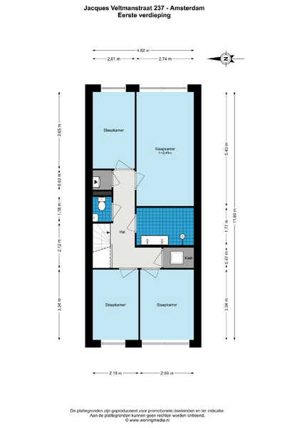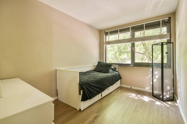 De trap leidt naar de tweede verdieping. Hier vind je in totaal 4 slaapkamers en de badkamer. Alle slaapkamers hebben uitzicht op de voor- of achtertuin. De badkamer heeft een riante inloop douche en dubbel wastafelmeubel. Verder nog een apart toilet, vaste kasten met CV en kast met wasmachine/droger opstelling.