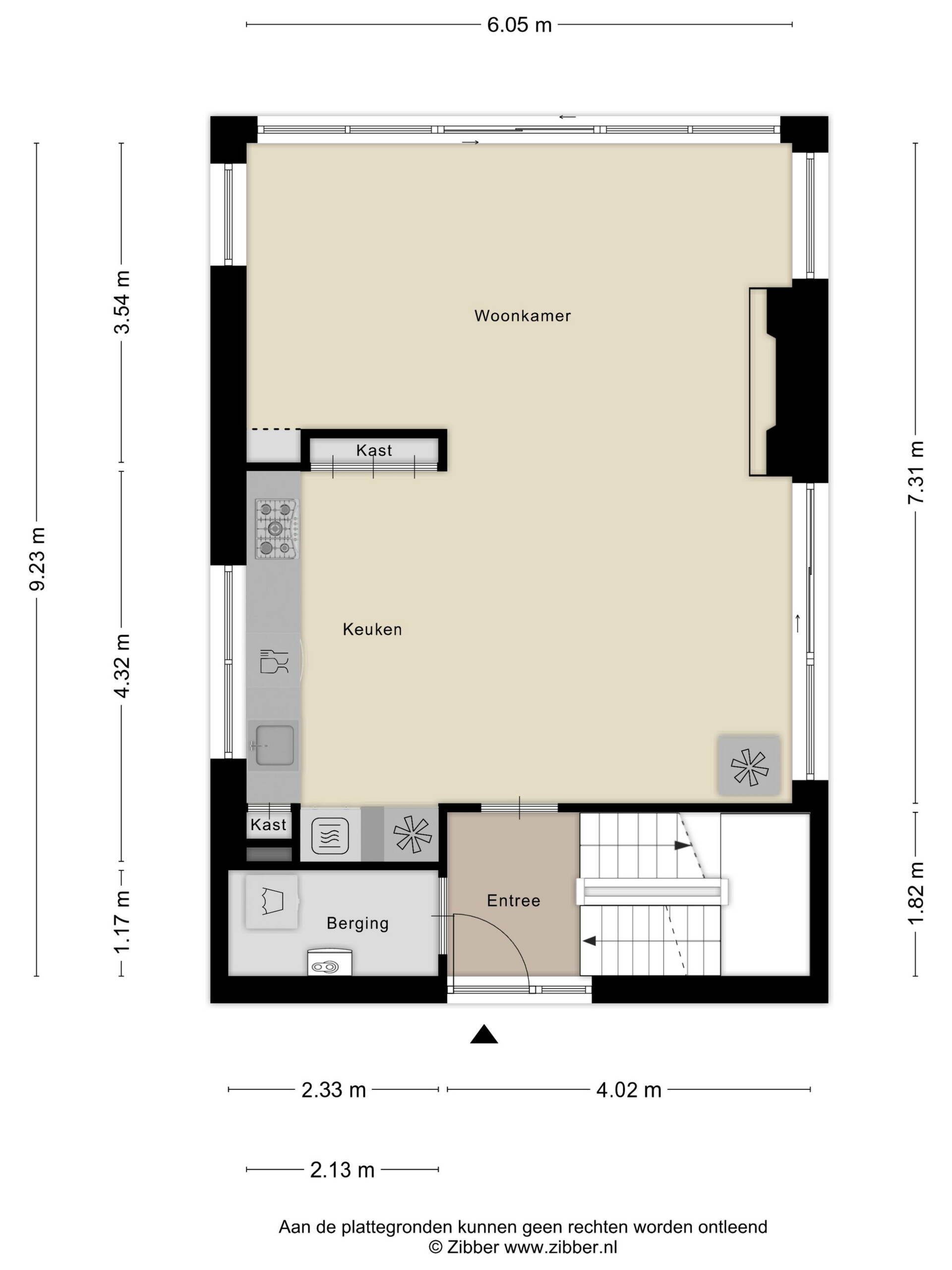 Binnenkomen doe je via een nette entree met toegang tot het trappenhuis en een praktische berging/bijkeuken met technische installaties. De luxe open keuken is volledig uitgerust met moderne inbouwapparatuur en vormt het hart van het huis: koken, tafelen en leven lopen hier vanzelf in elkaar over.