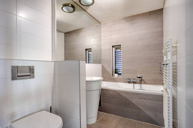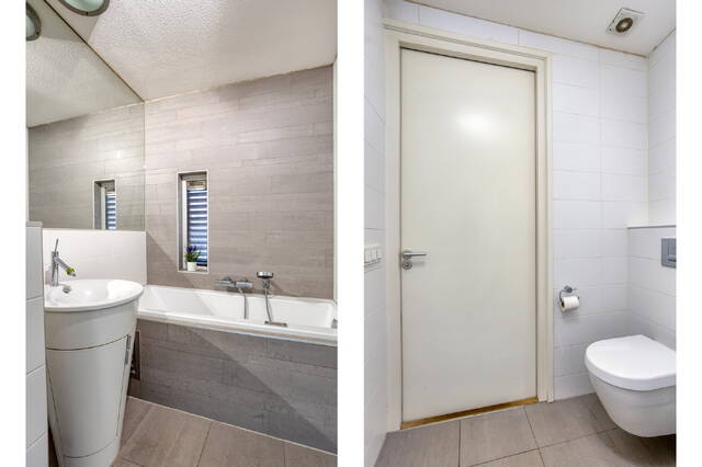 This level also features a second bathroom with a bathtub including bubble/whirlpool function, washbasin(s) and toilet, creating a calm, hotel-like atmosphere. There is no walk-in shower on this floor.