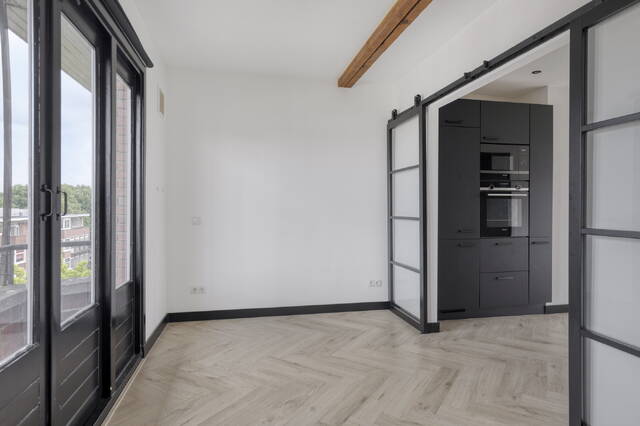 Bij binnenkomst valt meteen op hoe slim de ruimte van 33,1 m2 is benut. De studio is in 2021 volledig gerenoveerd, en dat zie je aan alles. Frisse afwerking, moderne materialen en een indeling die aanvoelt als twee keer zo groot. De open leefkeuken loopt naadloos over in de woonkamer, en dankzij de openslaande deuren aan de westzijde stroomt het daglicht de hele dag naar binnen. De keuken zelf is een lust voor het oog en voor de kookliefhebber: inductiekoken, een oven, een magnetron, een koelvriescombinatie en een royale apothekerskast voor al je voorraad. Hier kook je met plezier.