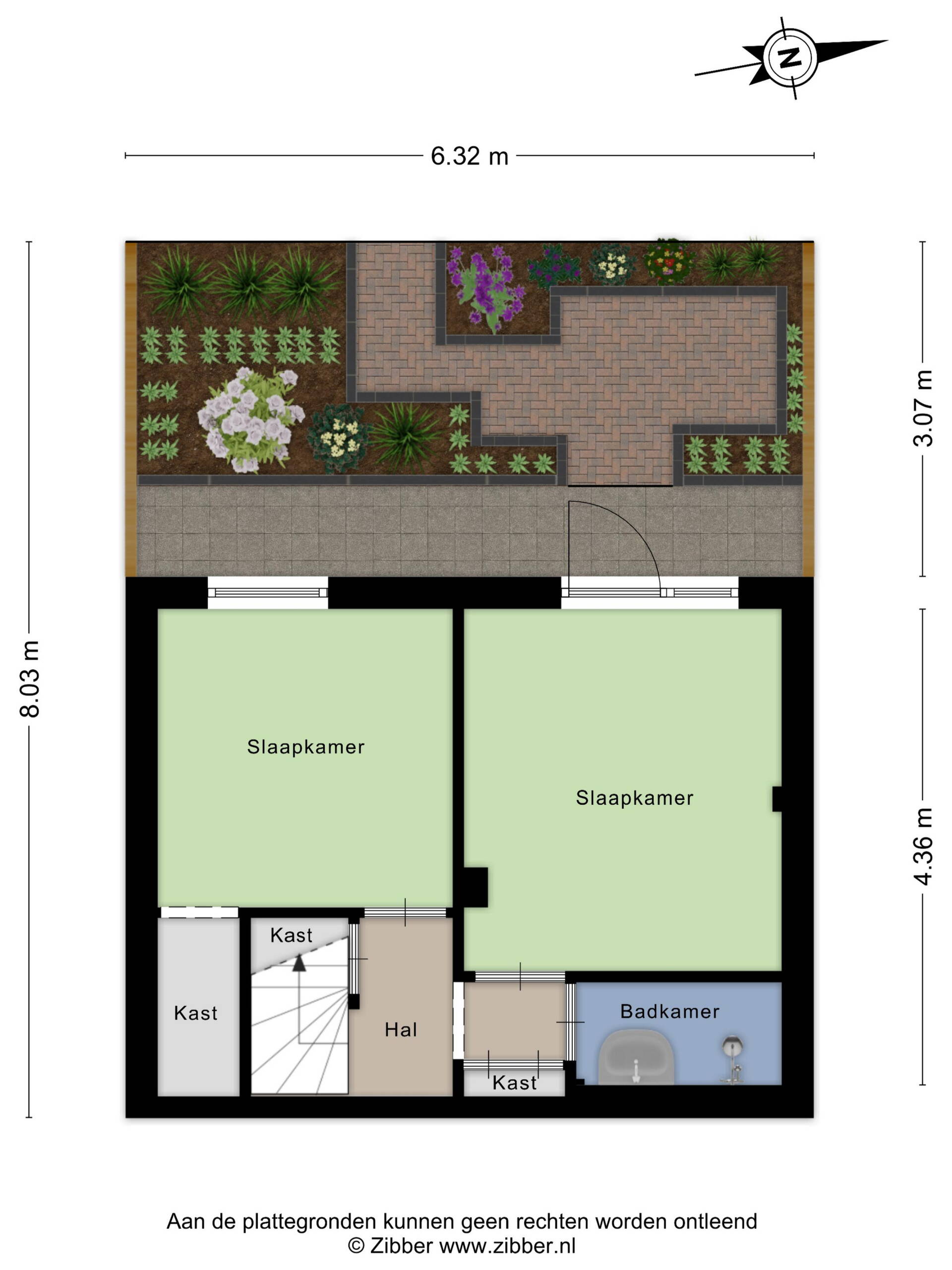 Het appartement biedt een prettige, overzichtelijke plattegrond met twee slaapkamers, een woonkamer, keuken en badkamer. De ruimtes zijn goed van maat en de begane grondligging zorgt voor een directe verbinding met de tuin. De woning is bewoond en functioneel, maar verdient op onderdelen een eigentijdse aanpak — de plattegrond vormt een solide vertrekpunt.
