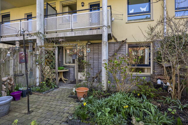 The apartment offers a pleasant, straightforward floor plan with two bedrooms, a living room, kitchen and bathroom. The rooms are well-proportioned and the ground floor position creates a direct connection to the garden. The apartment is liveable as is, but deserves a contemporary touch here and there — the floor plan provides a solid starting point.