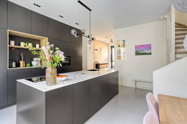 Vier slaapkamers, een werkkamer, twee badkamers, een woonkamer van 34,9 m² en een keuken waar je geen excuus meer hebt om niet te koken. John Blankensteinstraat 103 is een nieuwbouwwoning die slim is opgezet, hoogwaardig is afgewerkt en op de bovenste verdieping afsluit met een uitzicht over het IJ dat je niet snel vergeet. Zeeburgereiland op zijn best.