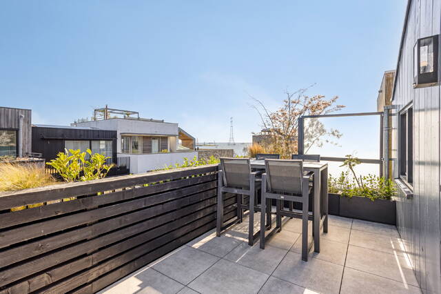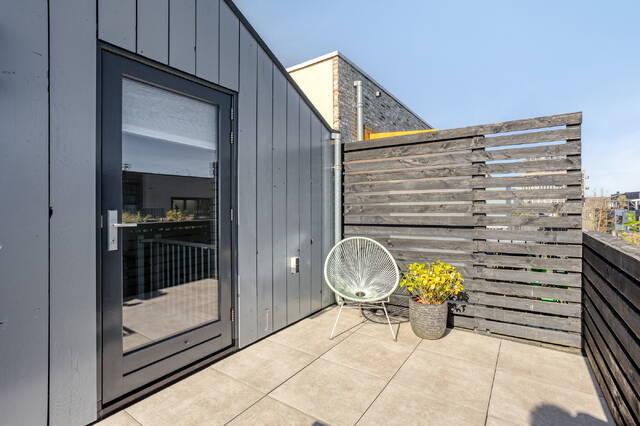 The rear garden of approximately 20 m² faces east, is fully paved and immediately usable. Enclosed and low-maintenance — exactly right for a home that already offers so much inside. The terrace on the third floor adds an entirely different dimension to outdoor living.