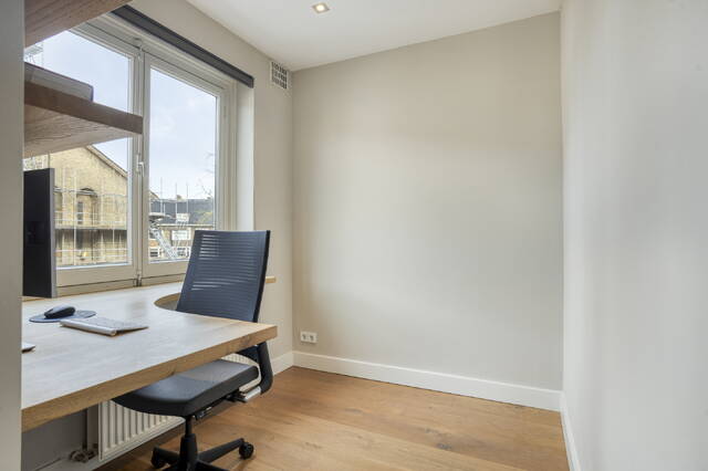 De ruime woonkamer biedt volop ruimte voor een comfortabele zithoek en is slim verbonden met de aangrenzende werkkamer. Die werkkamer is nu ideaal als thuiskantoor, maar wie twee aparte slaapkamers wil, hoeft slechts een kleine ingreep te doen om dat te realiseren. De indeling is daarmee uitzonderlijk flexibel, zeker voor een appartement in dit segment. Zonlicht speelt in de loop van de dag door de ramen en zorgt voor dat warme, uitnodigende gevoel dat je nergens kunt kopen maar overal naar verlangt.