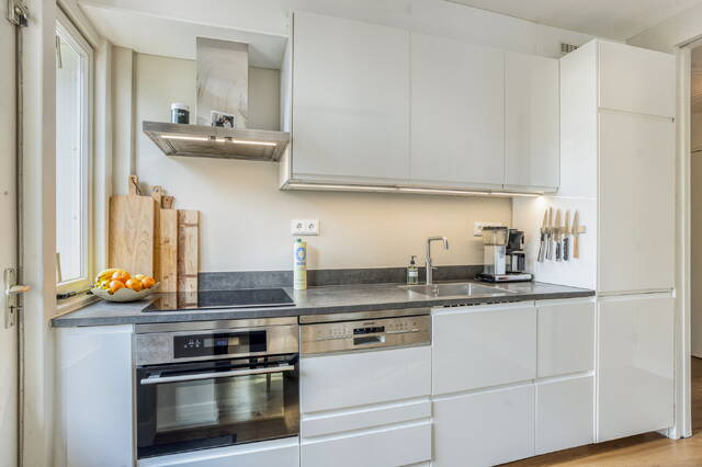 Zodra je de voordeur openduwt, voel je meteen dat hier met zorg aan gewerkt is. In 2021 is het appartement volledig gerenoveerd: van de vloer tot het plafond, van de keuken tot de badkamer, alles is vernieuwd. Geen gebarsten tegels, geen verouderde elektra, geen krakende planken. De warme houten vloer loopt door het hele appartement en geeft elke ruimte een gevoel van samenhang en gezelligheid. De lichtinval is goed, de afwerking is hoogwaardig en het geheel straalt een rustige luxe uit die je ook na jaren wonen nog zult waarderen.