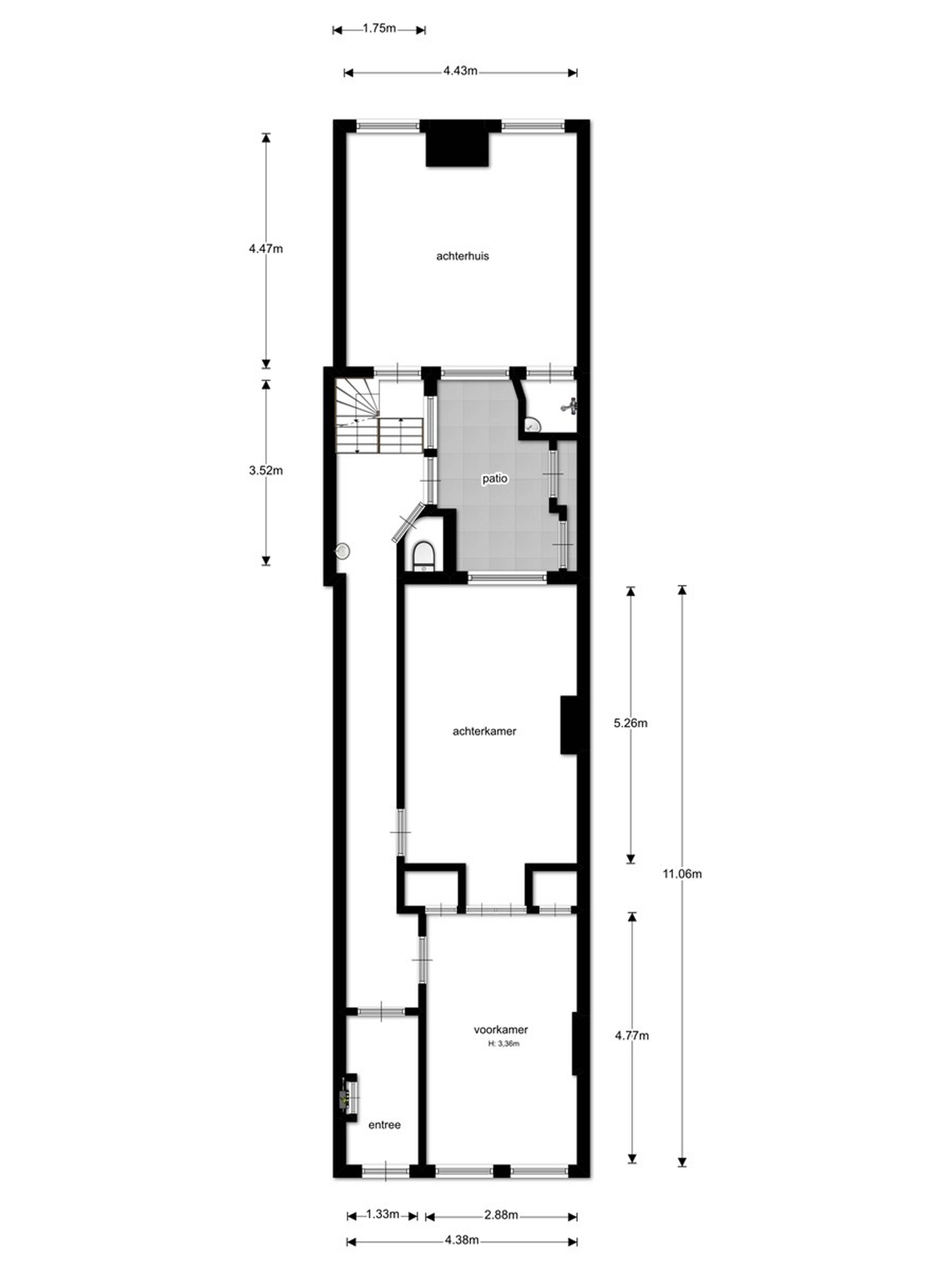 KEIZERSGRACHT 308, 1016 EX, AMSTERDAM VRAAGPRIJS: € 2.100.000,- k.k. Uniek! Een heel pand, voor- en achterhuis (totaal circa 268 m2) op een schitterende plek aan de Keizersgracht. Het pand bestaat uit 4 lagen en een souterrain (circa 47 m2, is niet in de totale woonoppervlakte inbegrepen). Op de begane grond is een patio en op de tweede etage van het achterhuis (bovenste) een dakterras.