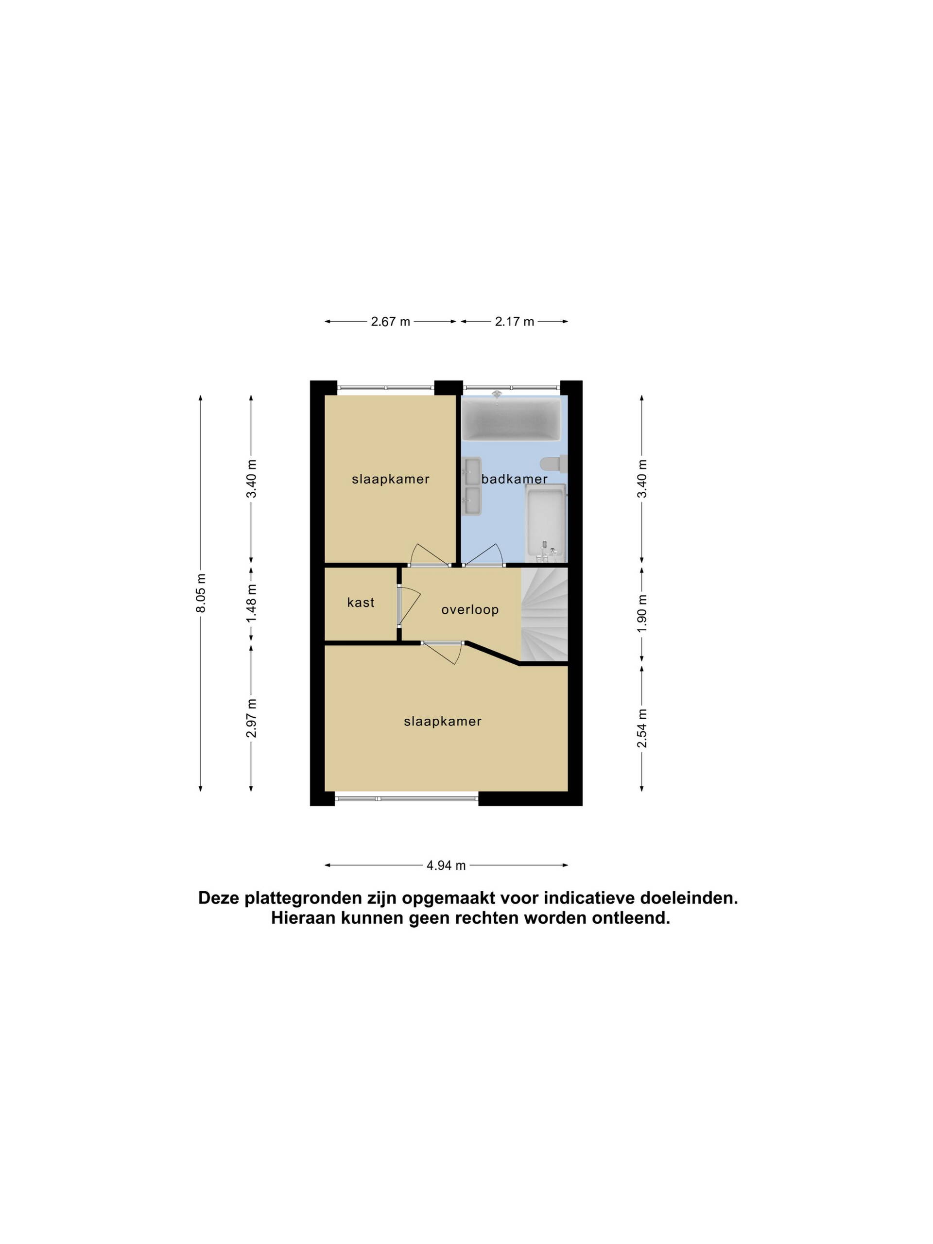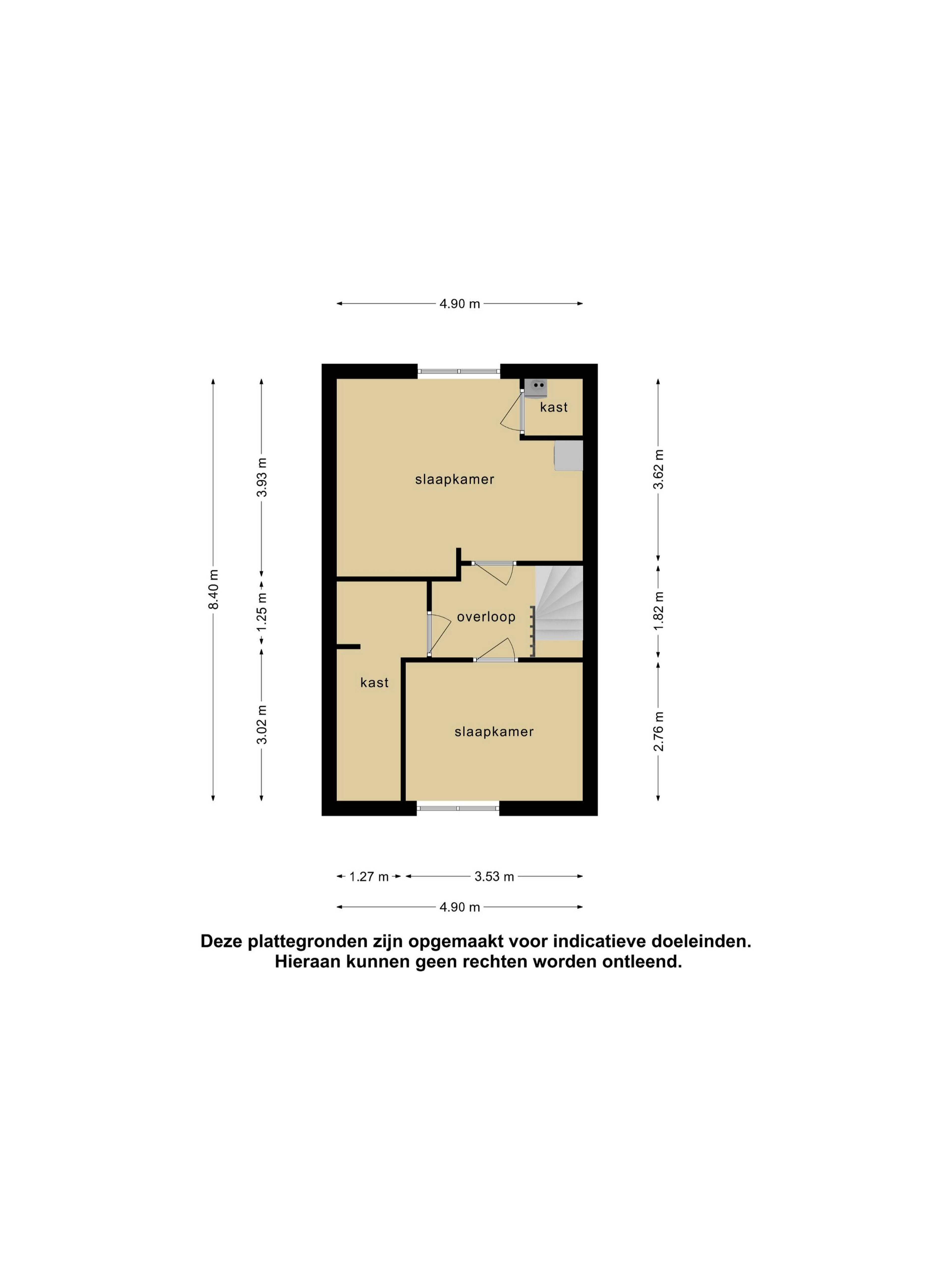 De tweede verdieping is verrassend ruim. Hier tref je nog eens twee slaapkamers en een grote vaste kast. Deze kamers zijn naar wens in te richten als slaapkamers, inloopkast, thuiskantoor of wasruimte. In een van de kamers bevindt zich namelijk de wasmachine aansluiting.