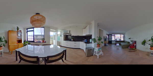 Bij binnenkomst in de hal vind je het aparte toilet, de meterkast en de toegang tot het woongedeelte. Al direct bij het betreden van het woongedeelte valt op hoe goed en prachtig deze woning is onderhouden. Op de vloer ligt een luxe visgraat vloer en het betreft een heerlijke doorzonwoonkamer. Het is een grote open ruimte met genoeg plek voor een woonkamer, eetkamer en open keuken.
