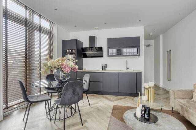Met een woonoppervlak van 42 m² en één slaapkamer is dit appartement perfect voor een single of stel. De moderne keuken is strak vormgegeven en voorzien van alle benodigde apparatuur, ideaal voor wie van gemak én stijl houdt. De badkamer is eveneens modern afgewerkt met een strakke inloopdouche, praktische indeling en een rustige uitstraling.