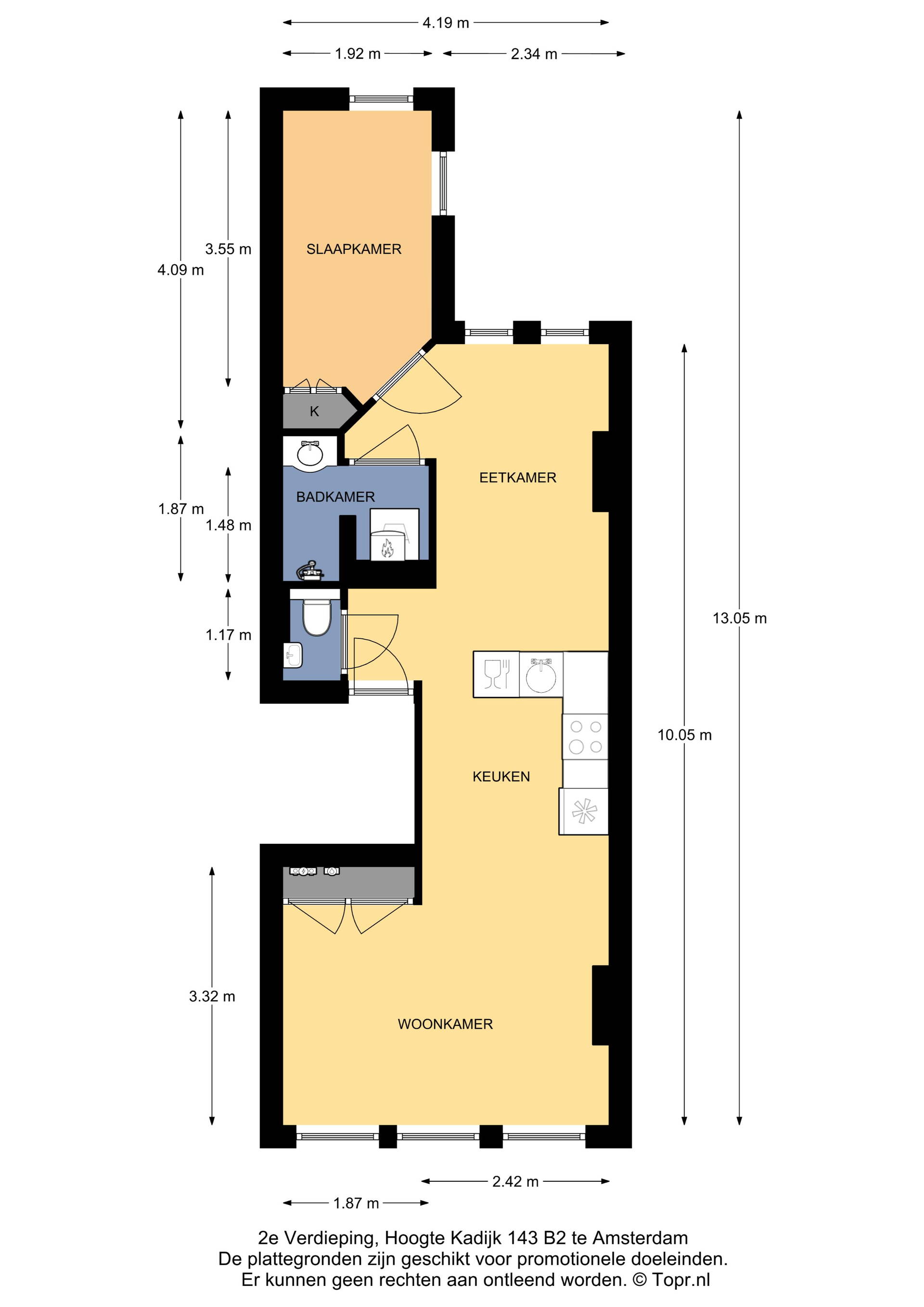 U betreedt de woning via de gemeenschappelijke trap. Aan de voorzijde bevindt zich de ruime woonkamer met statige raampartijen, die zicht geven op de rustige straat. In de woonkamer bevinden zich twee ruime inbouwkasten, waarvan een met meterkast. Hierdoor is er weinig noodzaak om extra kasten te plaatsen en kan het woonoppervlakte optimaal worden benut.
