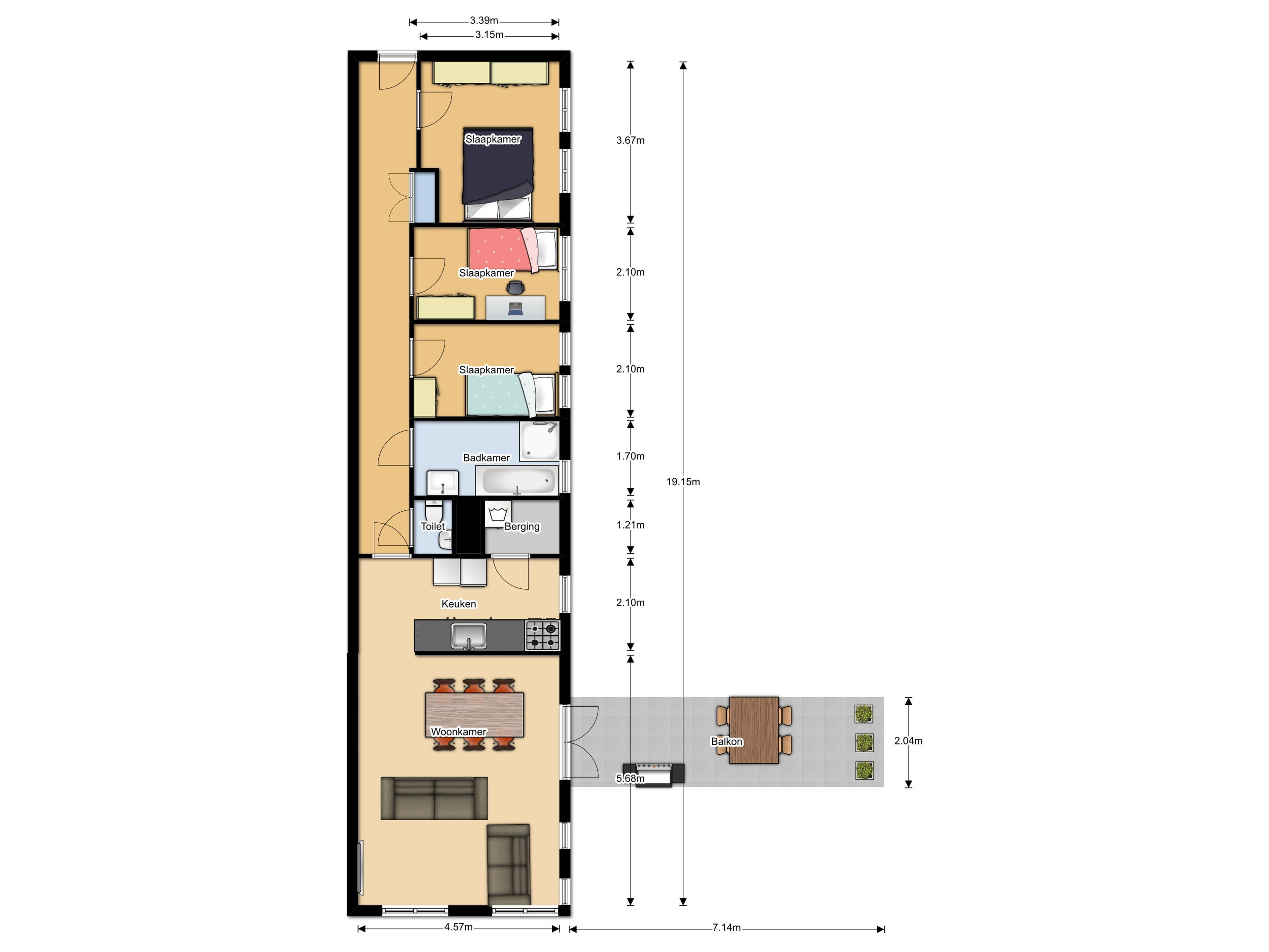 - 4-kamer appartement van 90 m2 inclusief parkeerplaats in ondergelegen met camera beveiligde parkeergarage