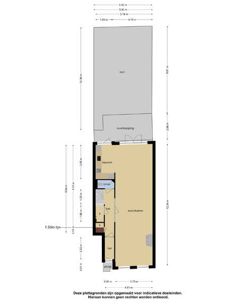 Zodra je de woning betreedt beland je in een statige, hoge hal waar aan de rechterzijde een luxe zwart-omlijste glazen wand en idem deur toegang verlenen tot de woonkamer. Aan het einde van de hal tref je een toilet, met links zowel de vaste trap als een ruime trapkast.