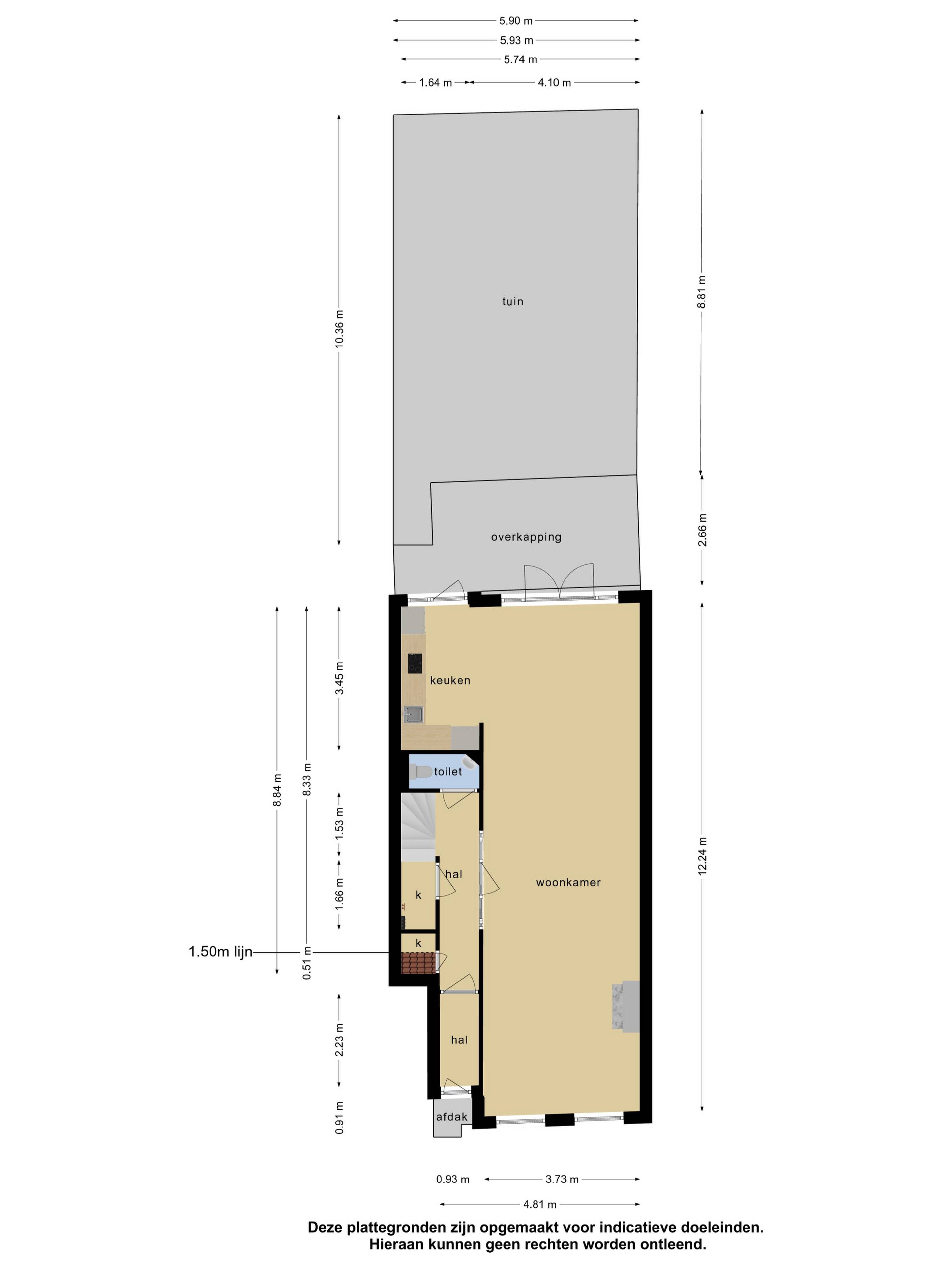 Zodra je de woning betreedt beland je in een statige, hoge hal waar aan de rechterzijde een luxe zwart-omlijste glazen wand en idem deur toegang verlenen tot de woonkamer. Aan het einde van de hal tref je een toilet, met links zowel de vaste trap als een ruime trapkast.