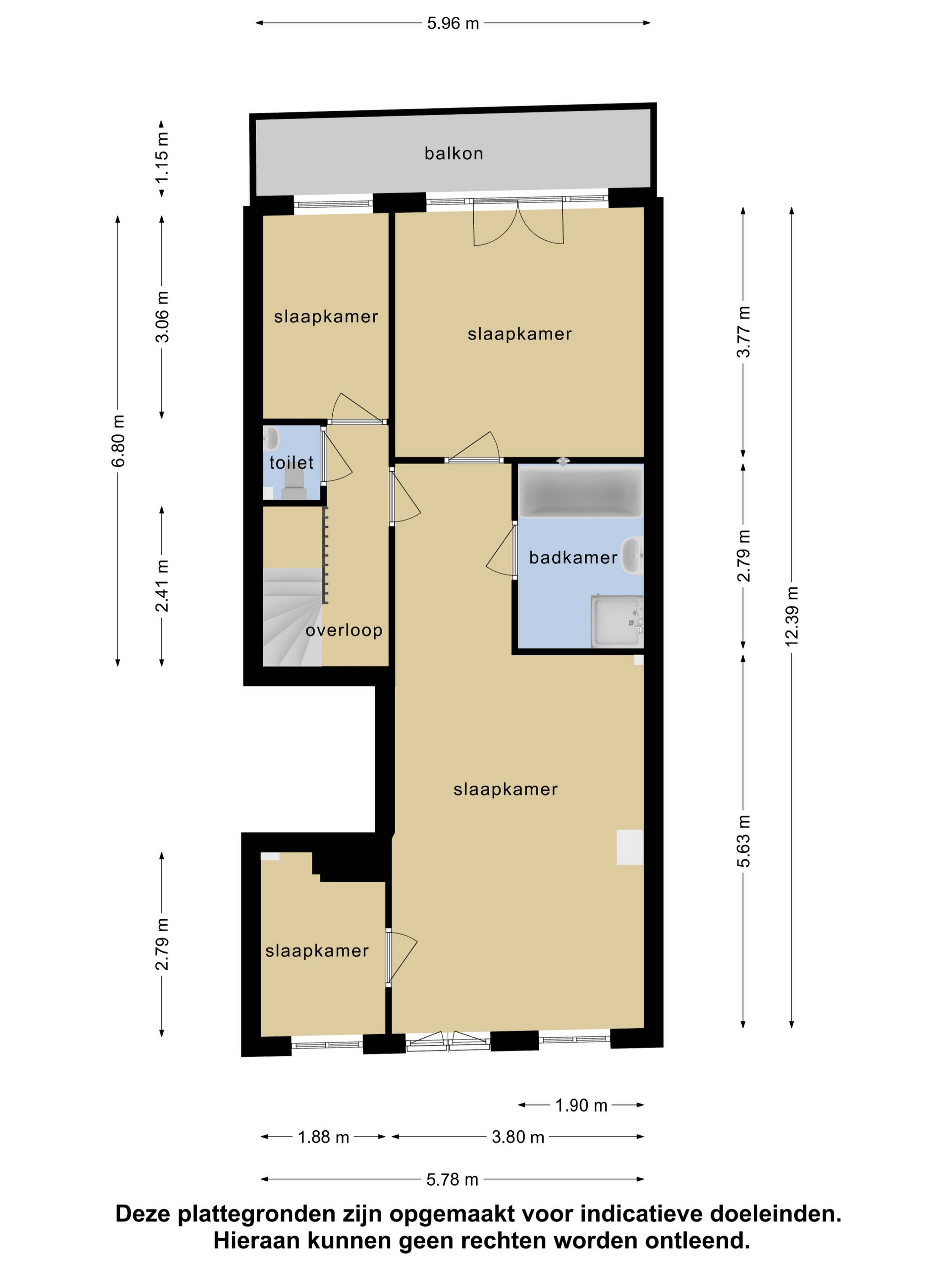 Ook op de tweede verdieping beschikt de linkerkamer over uitzicht op en toegang tot een eigen balkon op het zuiden. De kamer zelf is vrijwel vierkant met meer dan 3 meter in beide richtingen waardoor ook dit een zeer veelzijdige kamer is.
